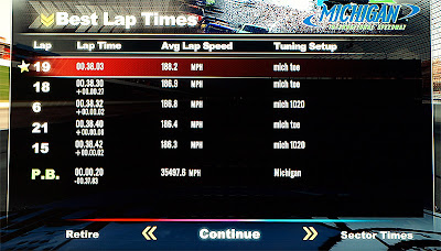 I hope all this helps. With these changes, I tend to run laps in the 49.45 range on my PS3 with a controller in practice on my own once there's a couple laps worth of heat in the tires. I can finesse the car to come out of corners at 191-193 MPH, and dive into them at 195-196 MPH.